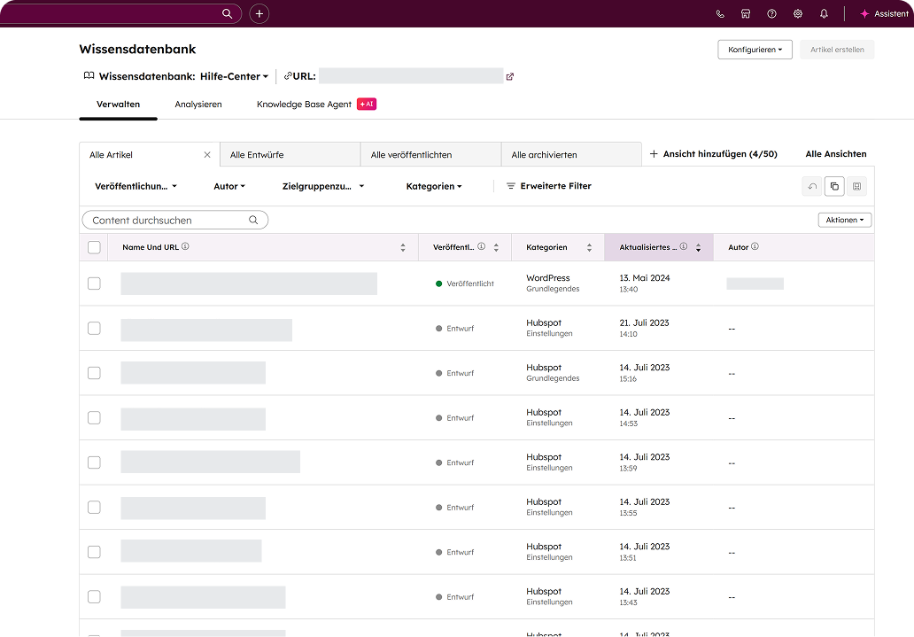 - Bessere Daten & Insights: HubSpot zeigt dir, welche Artikel am häufigsten genutzt werden – so erkennst du Wissenslücken und kannst Inhalte gezielt erweitern.
